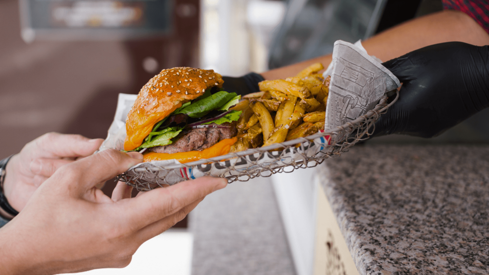 Buns boulangerie Brier, steack façon bouchère 130 gr, mimolette des Flandres, oignons rouges, sauce burger maison, mesclun