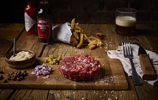 180g de boeuf Aubrac coupé au couteau, sauce burger maison, câpres, fleur de sel Guérande